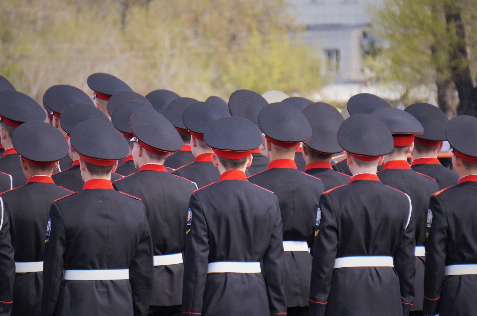 On arrive a se faufiler au premier rang, tout ce qui porte un uniforme à Irkoutsk (et ils sont nombreux) sont là, sur leur 31. Beaucoup de jeunes adolescents portent déjà l’uniforme. La revue militaire dure longtemps, les hauts parleurs diffusent des récits de guerre. Le soleil a raison de nous et vers midi on s’éclipse.