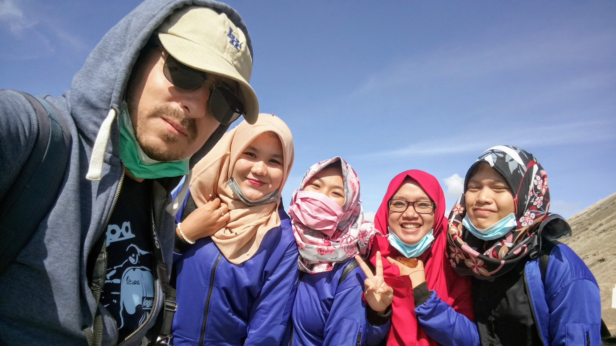Je m’élance dans la descente, mais le spectacle n’est pas fini. En bas des dizaines de lycéens indonésiens viennent d’arriver pour venir voir l’un des joyaux de leur beau pays.. Un premier groupe me demande un selfie, puis deux puis trois… Oui, mais c’est fini oui 🙂